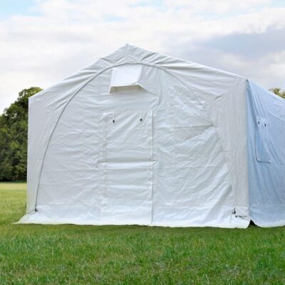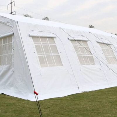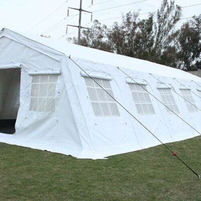 Tienda de usos múltiples que se puede utilizar para fines escolares, oficinas, clínicas, centros de salud, almacenamiento o refugio temporal y se pueden unir entre sí para hacer una estructura más larga
