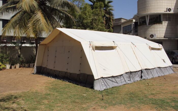Carpa multiusos de 45 m2 Se puede utilizar para almacenamiento, hospital, dispensario, escuela, oficina, …