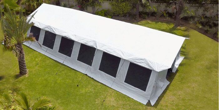 Carpa polivalente de 72 m2 Se puede utilizar para almacenamiento, hospital, dispensario, escuela, oficina, …