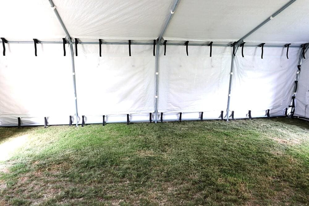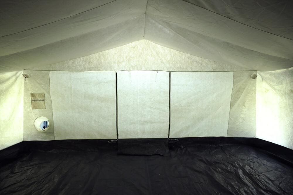 190 g/m² ±10% tejido laminado HDPE/LDPE, impermeable 5000 mm, resistente a los rayos UV, ignífugo CPAI 84-6, a prueba de podredumbre y duradero. Sujeto al marco o al forro interior con palancas / bucles. Puerta superpuesta en el centro con cierre de palanca / bucle. Dimensiones 600 cm x 210 cm (pared) / 300 cm (centro)