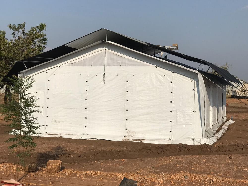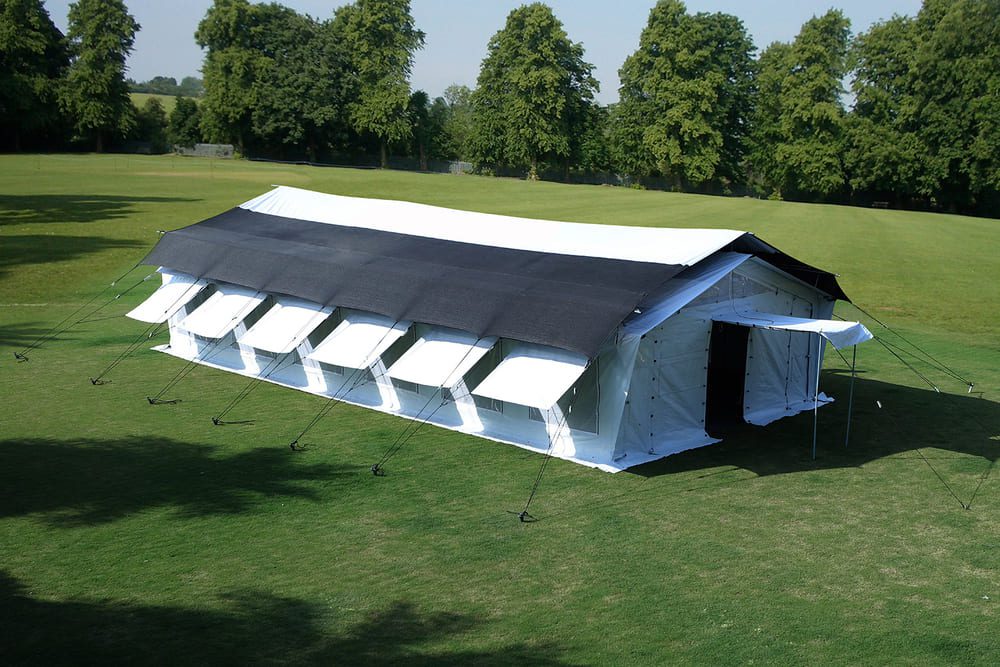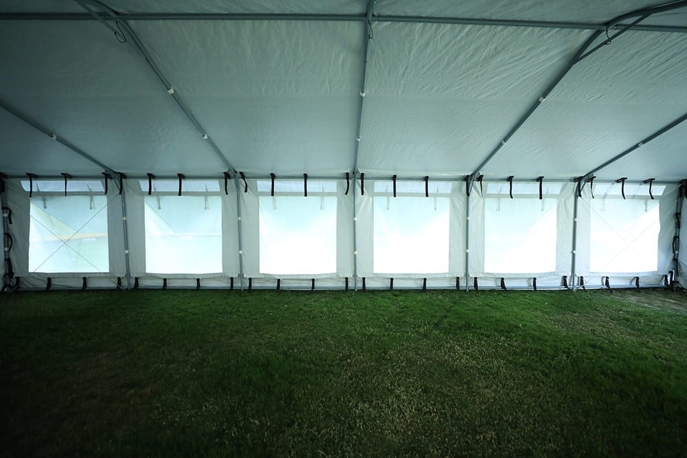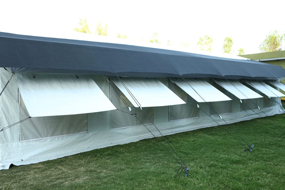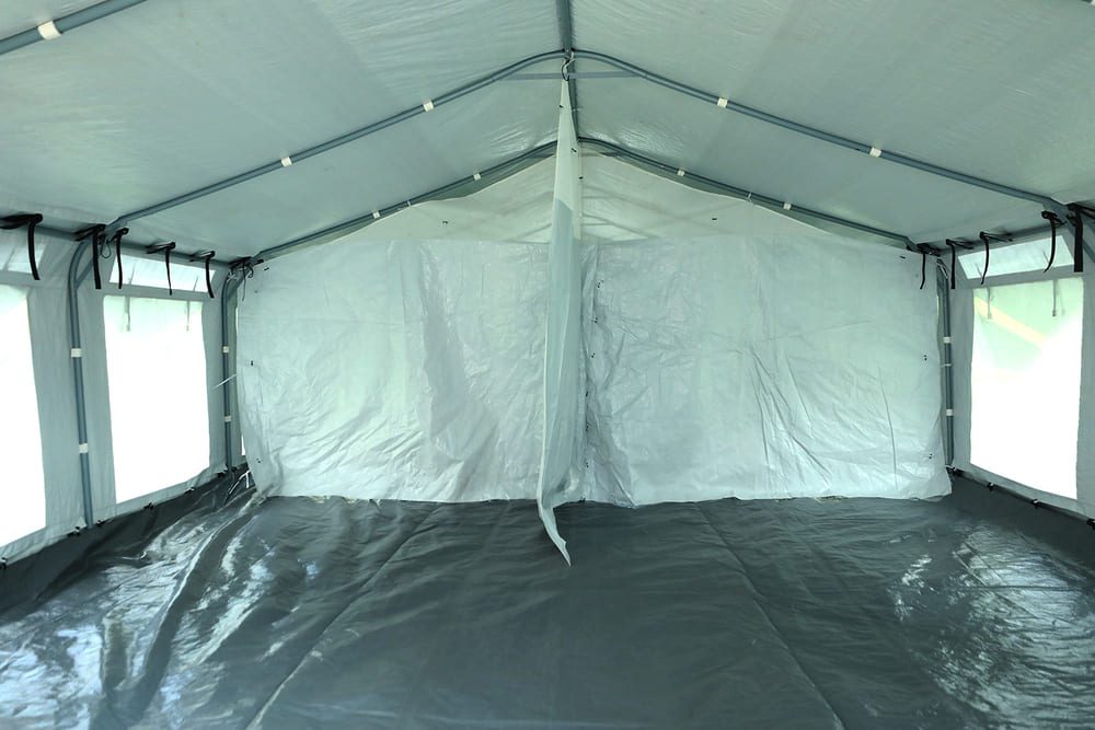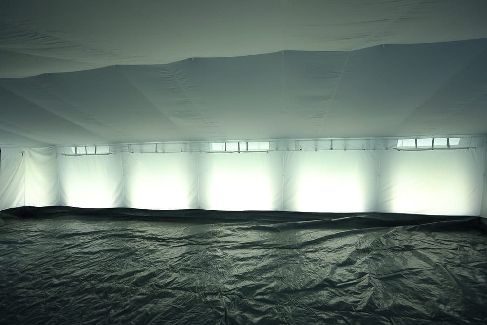 190 g/m² ±10% tejido laminado HDPE/LDPE, impermeable 5000 mm, resistente a los rayos UV, ignífugo CPAI 84-6, a prueba de podredumbre y duradero. Sujeto al marco o al forro interior con palancas / bucles. Puerta superpuesta en el centro con cierre de palanca / bucle. Dimensiones 600 cm x 210 cm (pared) / 300 cm (centro)