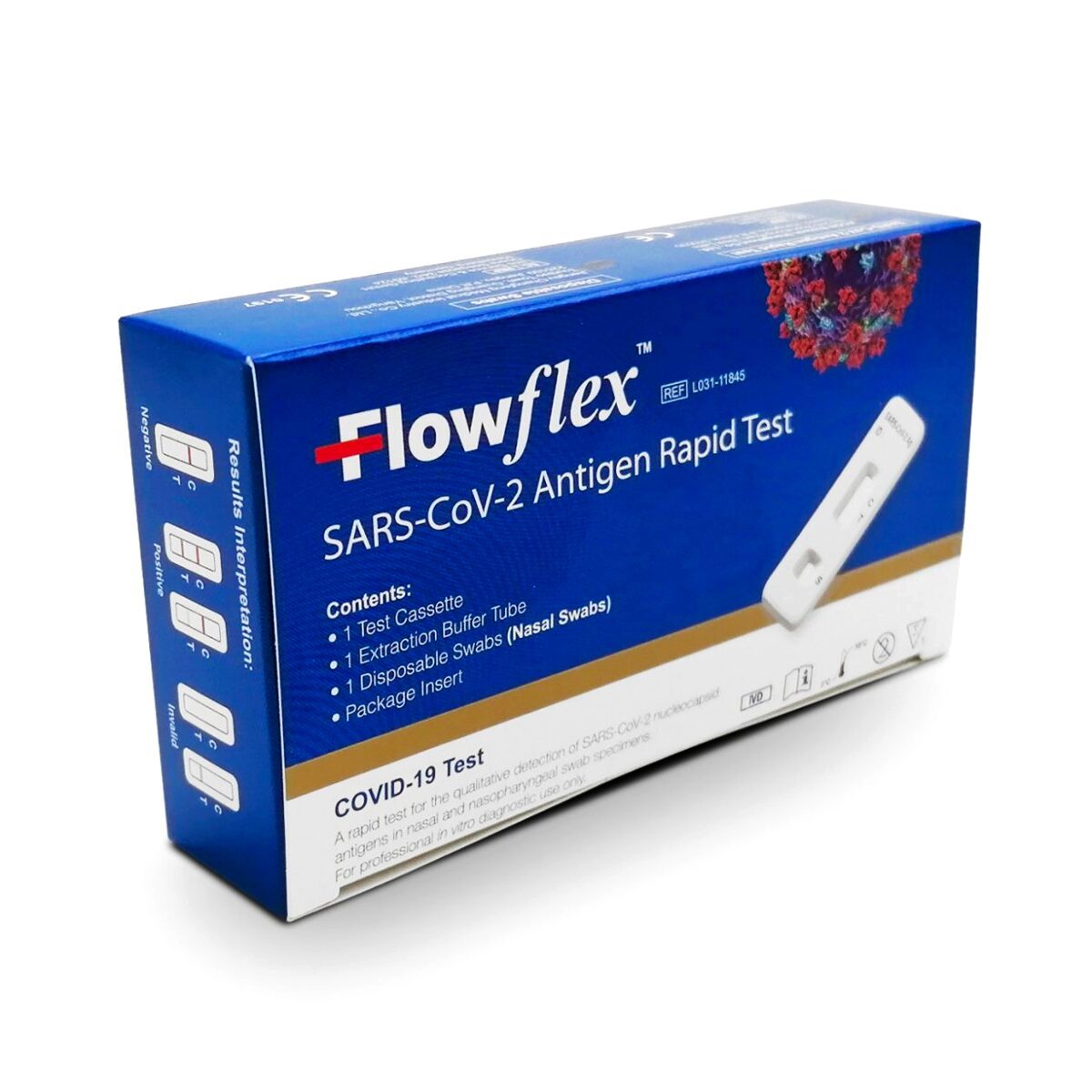 La prueba rápida del antígeno del SARS-CoV-2 es una prueba de flujo lateral para la detección cualitativa del antígeno de la nucleocápside del SARS-CoV-2 en muestras de hisopados nasales previos directamente de individuos sospechosos de COVID-19 dentro de los primeros siete días del inicio de síntomas. La prueba también puede analizar muestras de personas asintomáticas. No diferencia entre SARS-CoV y SARS-CoV-2.