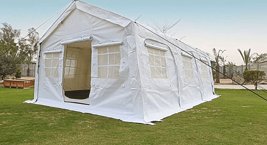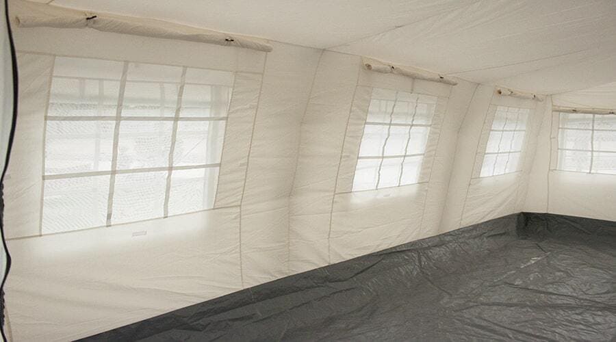 La tela exterior de la tienda está hecha de tela recubierta de PVC de 450 g/m² – 550 g/m², 5000 mm.