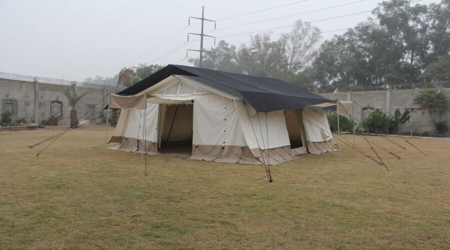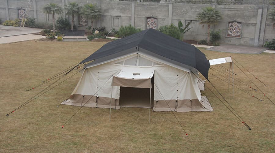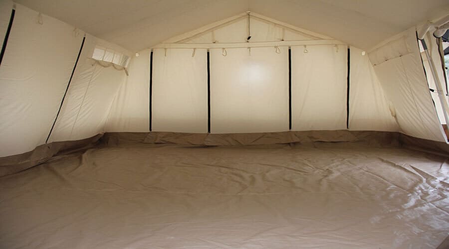 - La hoja de tierra separada para su uso en la tienda de campaña está disponible como opción en caso de que la carpa principal se use para condiciones de vida / clínicas