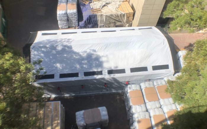 TIENDA DE CAMPAÑA (PAREDES Y AZOTEA) | 250 g/m² PE – a prueba de agua, podredumbre y UV – lavable/desinfectable |
